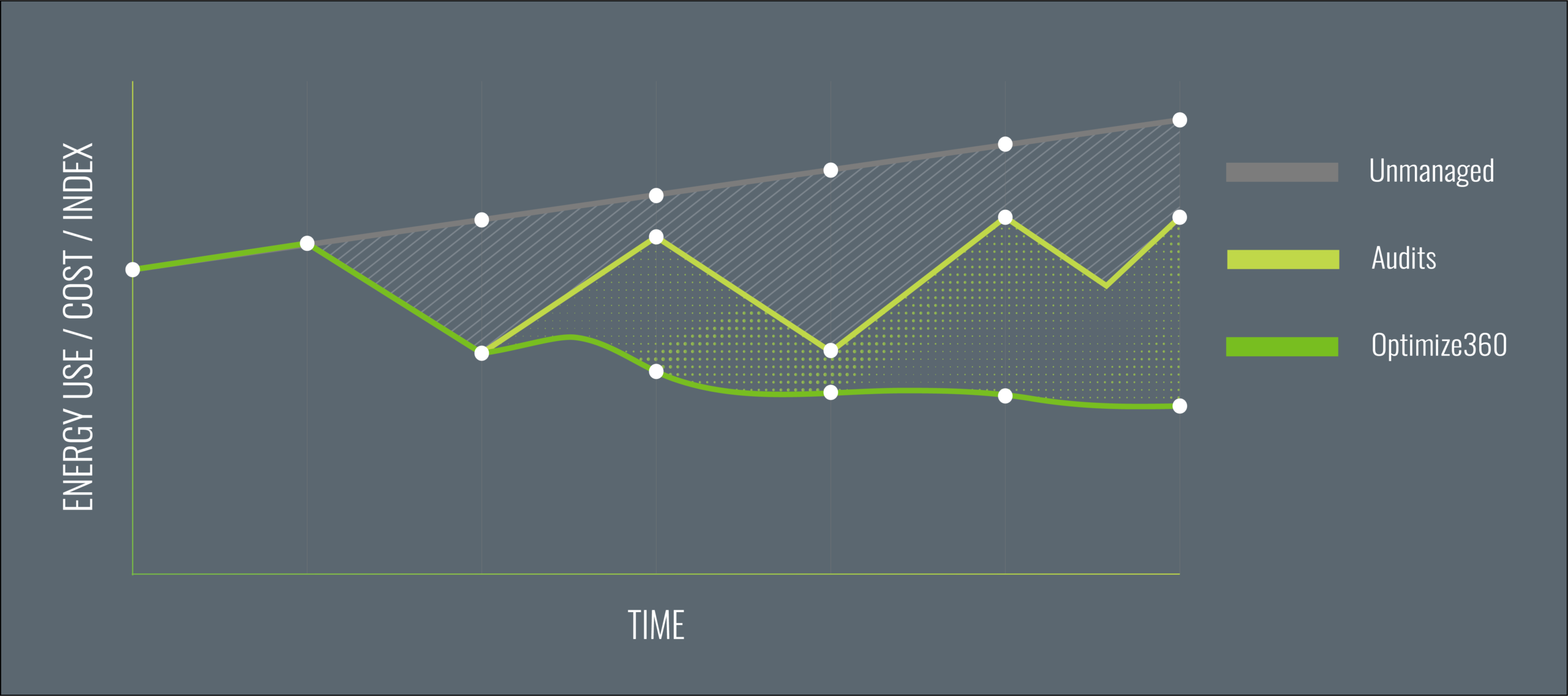 While a single energy project can capture short-term savings, Optimize 360 provides ongoing oversight to ensure systems remain efficient as space use, seasons, and technologies evolve.